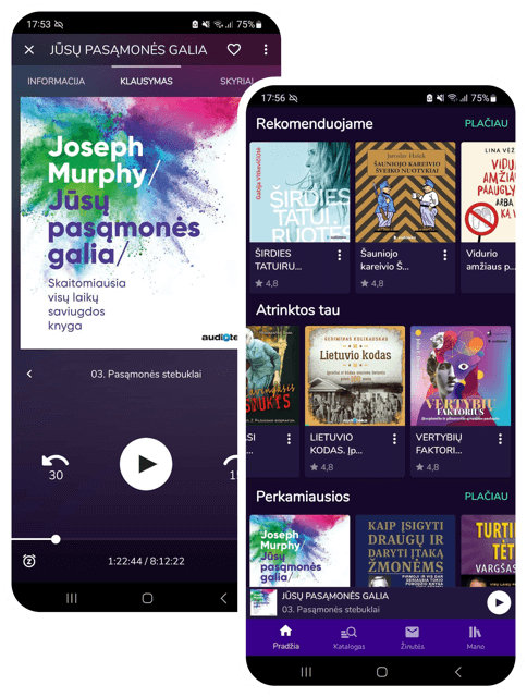 Patogiai klausykite audioknygų per programėlę. Bet kur ir bet kada